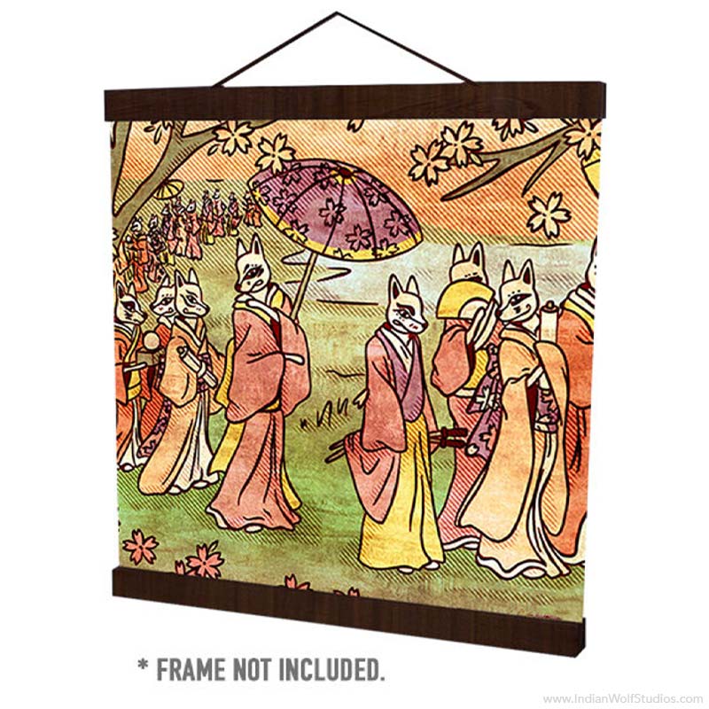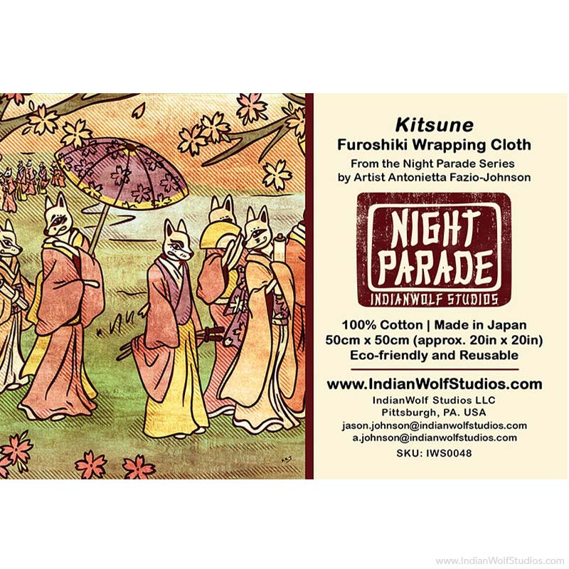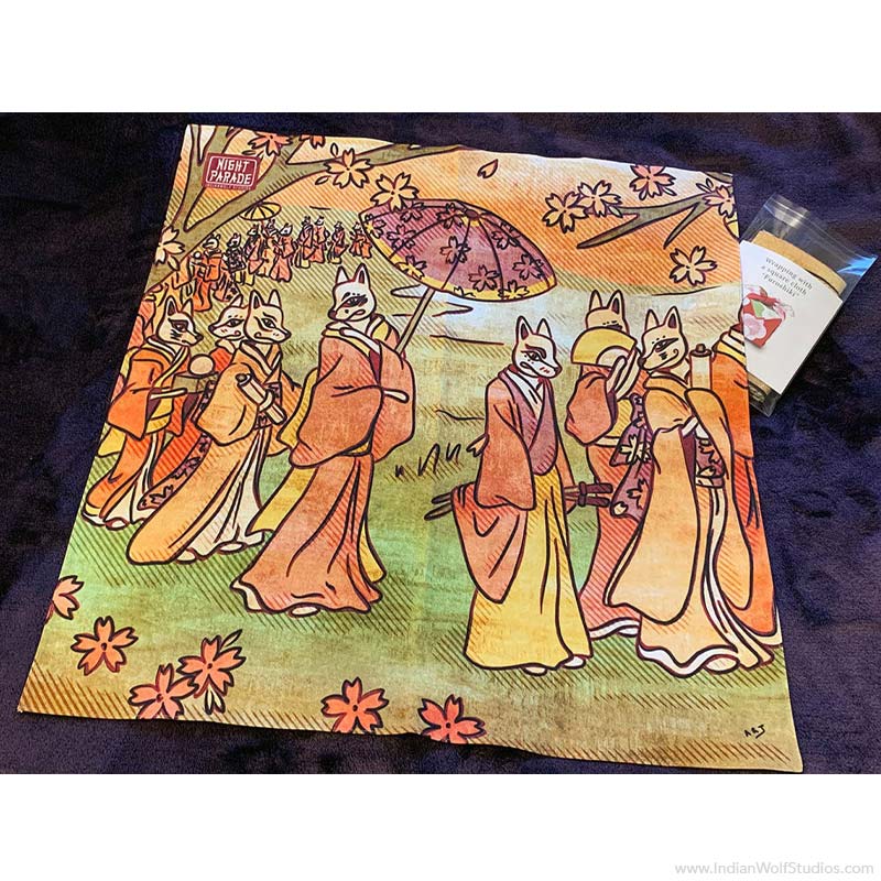 Kitsune Furoshiki | Japanese Wrapping Cloth | 100% Cotton | Reusable | 20in x 20in | Great for wrapping gifts and hanging as wall art! | Limited