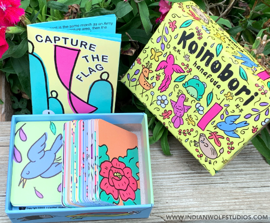 Every Koinobori Hanafuda deck will include a 28-page, 2.5” x 3.5”, saddle-stitched, full-color rule booklet for Capture the Flag.
