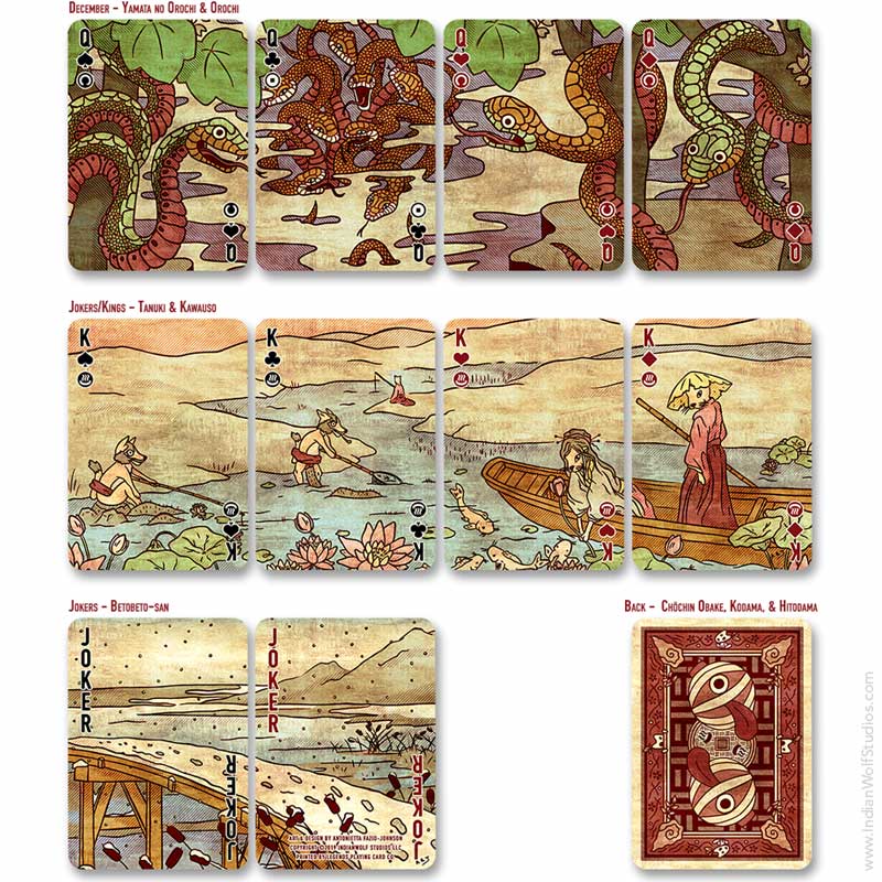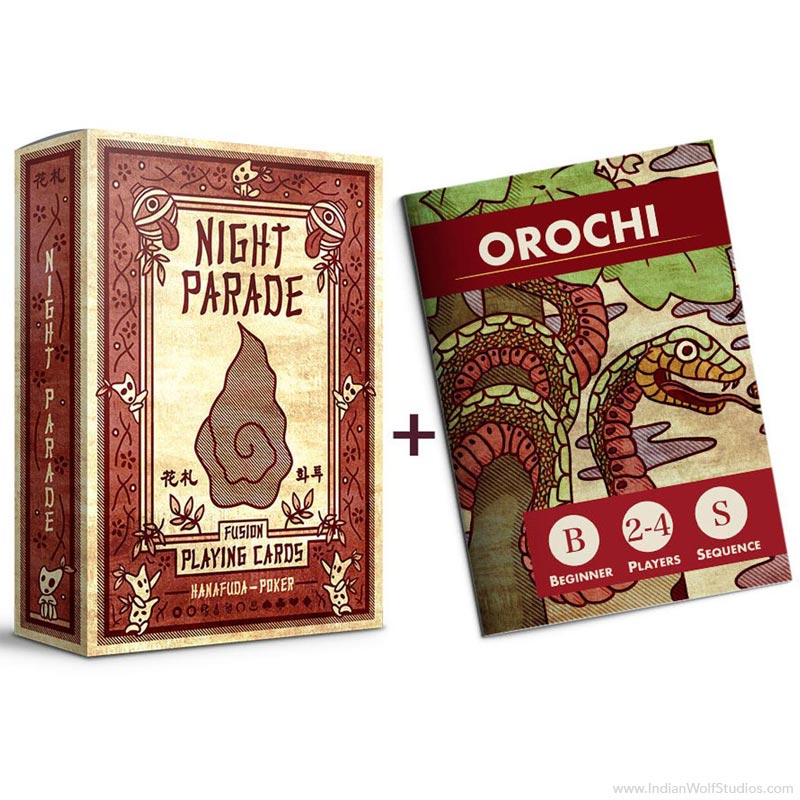 Orochi is a game that we designed and created specially for our Night Parade Fusion deck. Orochi is a fast, fun, and strategic shedding/climbing game that can be played with 2-4 people.