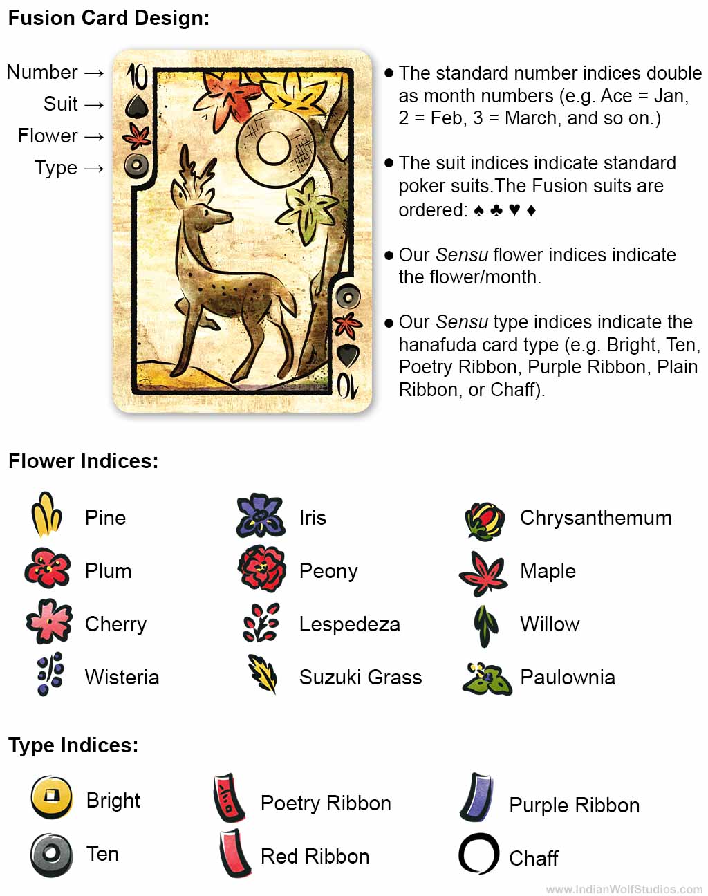 These helpful indices also make the Fusion deck a great way to learn and teach hanafuda.