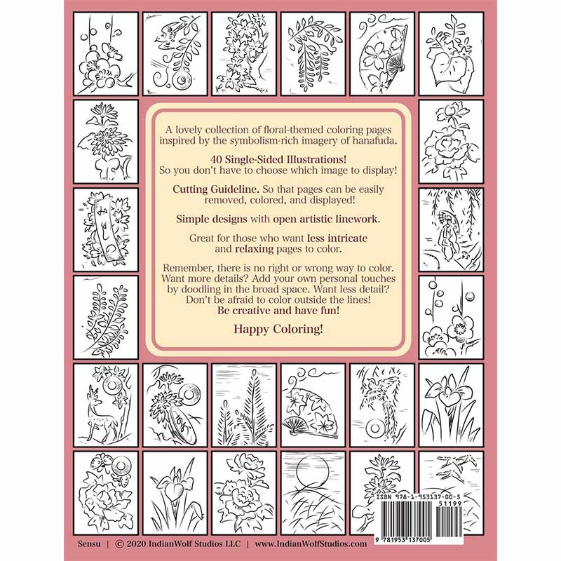 A lovely collection of floral-themed coloring pages inspired by the symbolism-rich imagery of hanafuda.